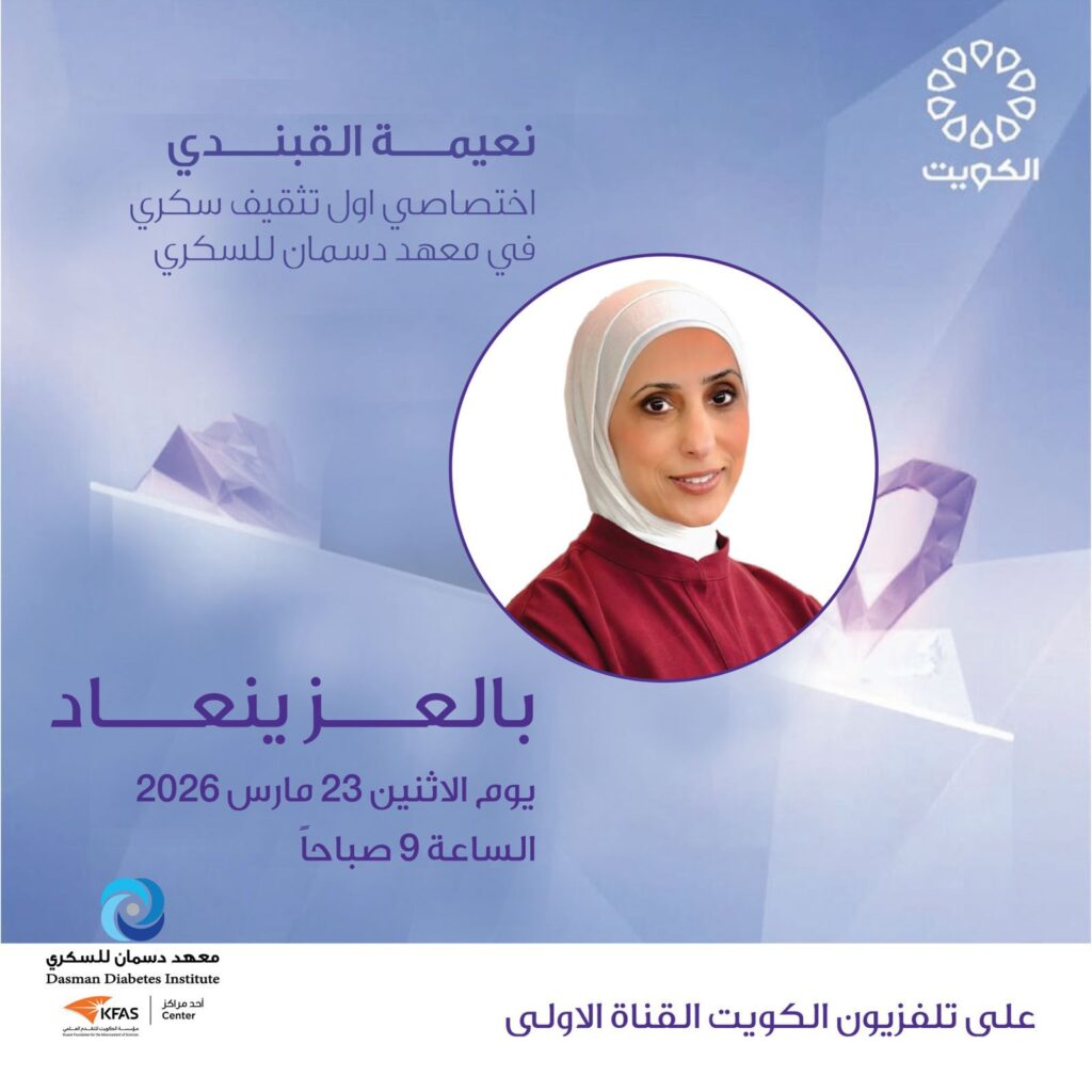 Watch Naeema Alqabandi, Senior Diabetes Education Specialist, on KTV1 this Monday, March 23, at 9:00 a.m. She will provide essential post-Ramadan & Eid health guidelines for people with diabetes. Stay tuned!